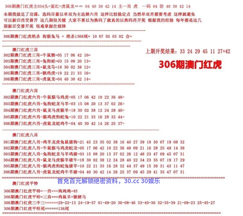 | 305期:九肖 | 蛇鸡马猪兔鼠猴龙羊 | 鼠42中 |