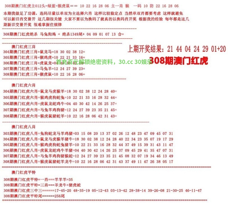 | 308期:三头必中【0-1-3】开:兔39准 |